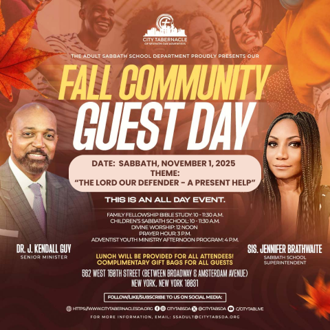 Sabbath School is every Sabbath morning, beginning at 9:15 a.m., with an afternoon Bible Study at 3:30 p.m. Sabbath afternoons.